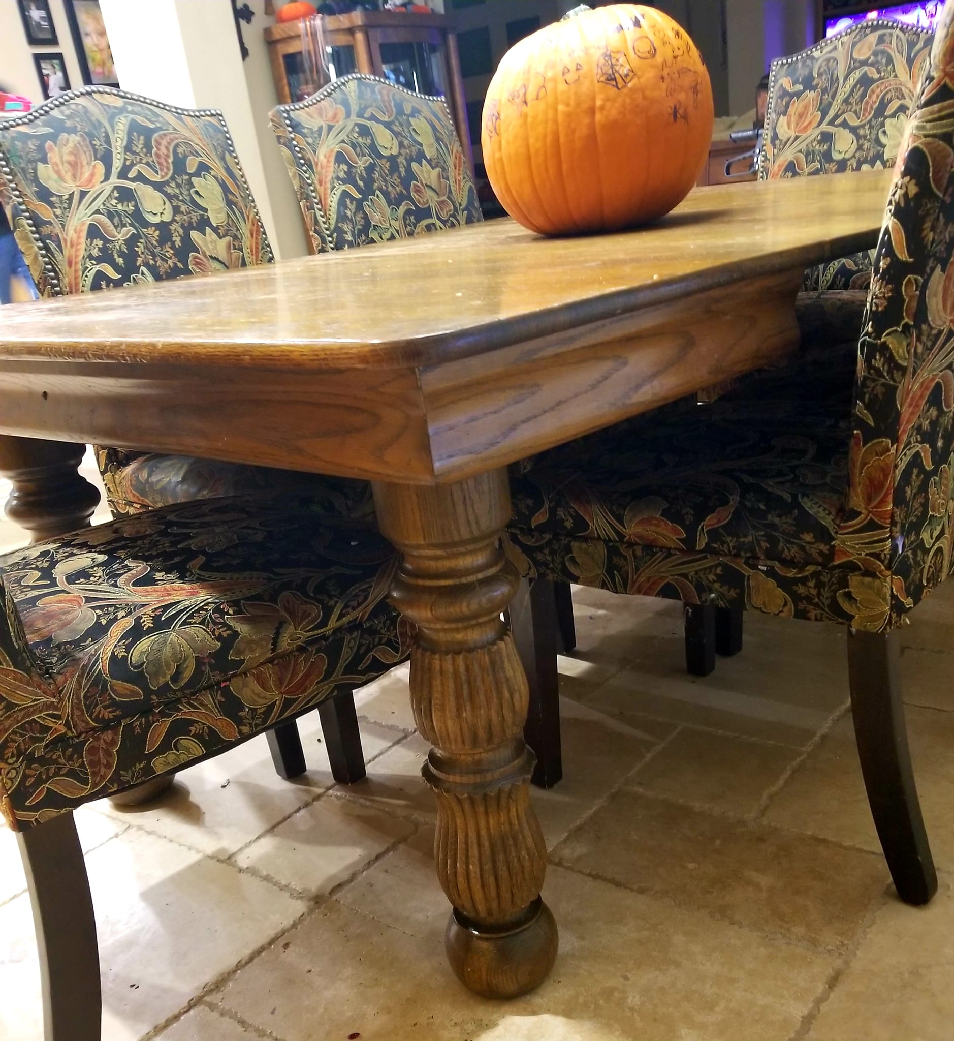 If the oak could speak, it would fill our hearts with stories. The table came to me when my grandmother was going to live somewhere other than her home. Today I believe it is called downsizing. She called it “breaking up housekeeping”. My grandfather had died and she, refusing to move in with my parents, went to live in a tiny apartment not too far from them. Not married long ourselves, we had no room for a big dining table in our apartment, but I loved the table that had been where we gathered to eat at Grandma’s house, and I wanted to keep it. She and Papa bought it second hand around 1920 after their house burned. They were replacing furniture. Since she was selling what she could, and badly needed the money, we insisted on paying her for the table. She would only accept $25.00. It sat for several years in Mother’s and Daddy’s garage. When we bought our first house with a dining room, we brought it to live with us and so began its role in our own family celebrations. That was nearly forty years ago. Since then, it has moved with us from San Antonio to Dallas and other Texas homes, to California and beyond to Indonesia. Perhaps it felt like a homecoming for the table when we brought it back to Texas in 1992. It was certainly a homecoming for us.