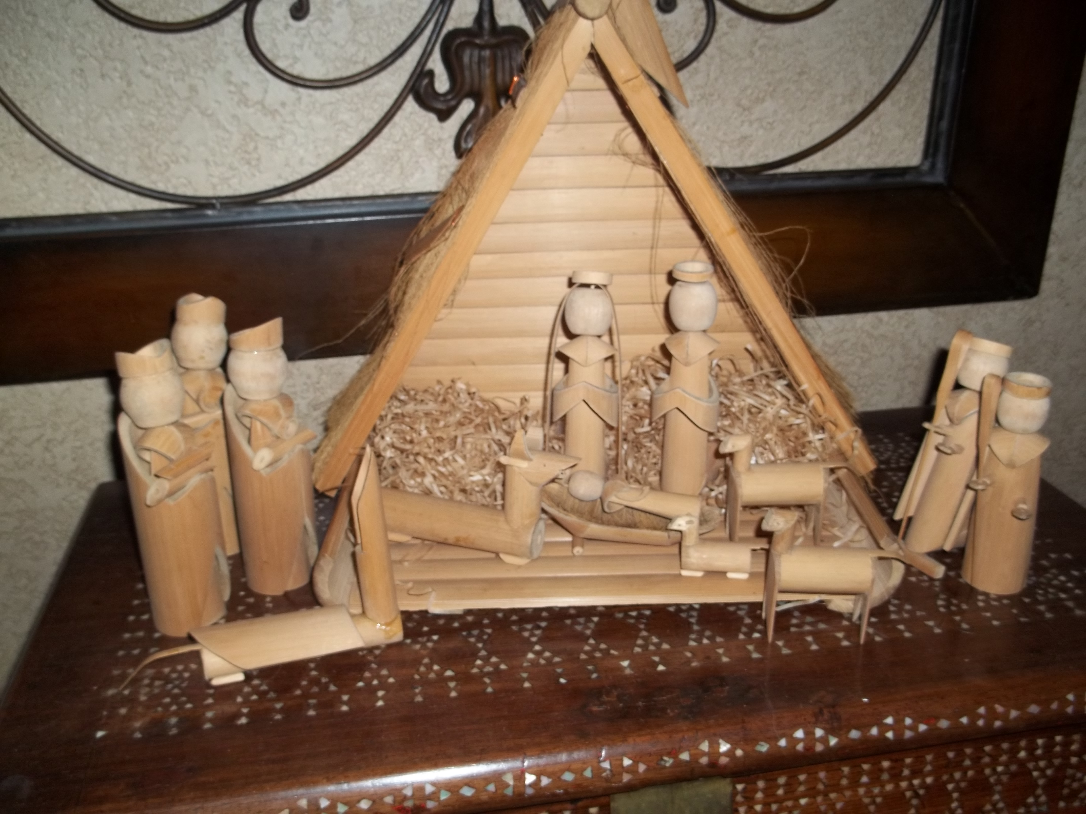 This bamboo nativity is one we got when we lived in Indonesia , along with the chest beneath it. If I titled today’s post Selamat Datang, many of you would not recognize the greeting, but if I smiled, spoke the words, and held out my arms, you would receive the message. Whether the creche is made of bamboo, or wood, or carved in stone, or simply made of sticks, we recognize its meaning because of the posture of the figures and their arrangement. Christ’s coming broke down the walls that separate us, the barriers of difference and indifference, the stones in our path to God and to each other. As we welcome Him, we learn a language that goes beyond speech. We are offered a language of love.