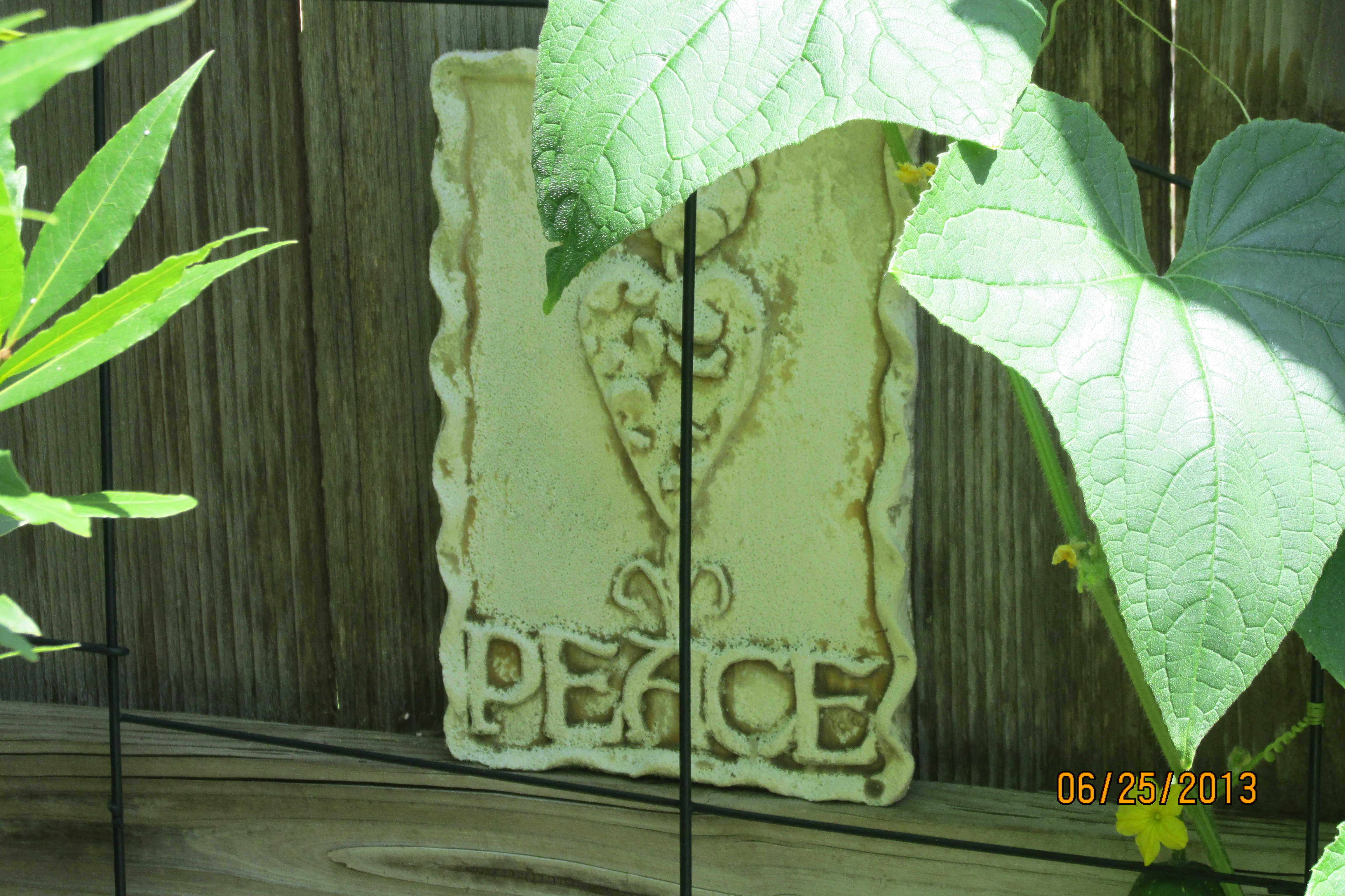This weather worn garden sign is propped on the fence behind my cucumber vines.  When I gathered my small harvest, I thought of these words.  The blessing of light, along with soil and moisture produced something good and nourishing.  The word Peace reminds me that my words have that potential when I use them to bless and encourage.