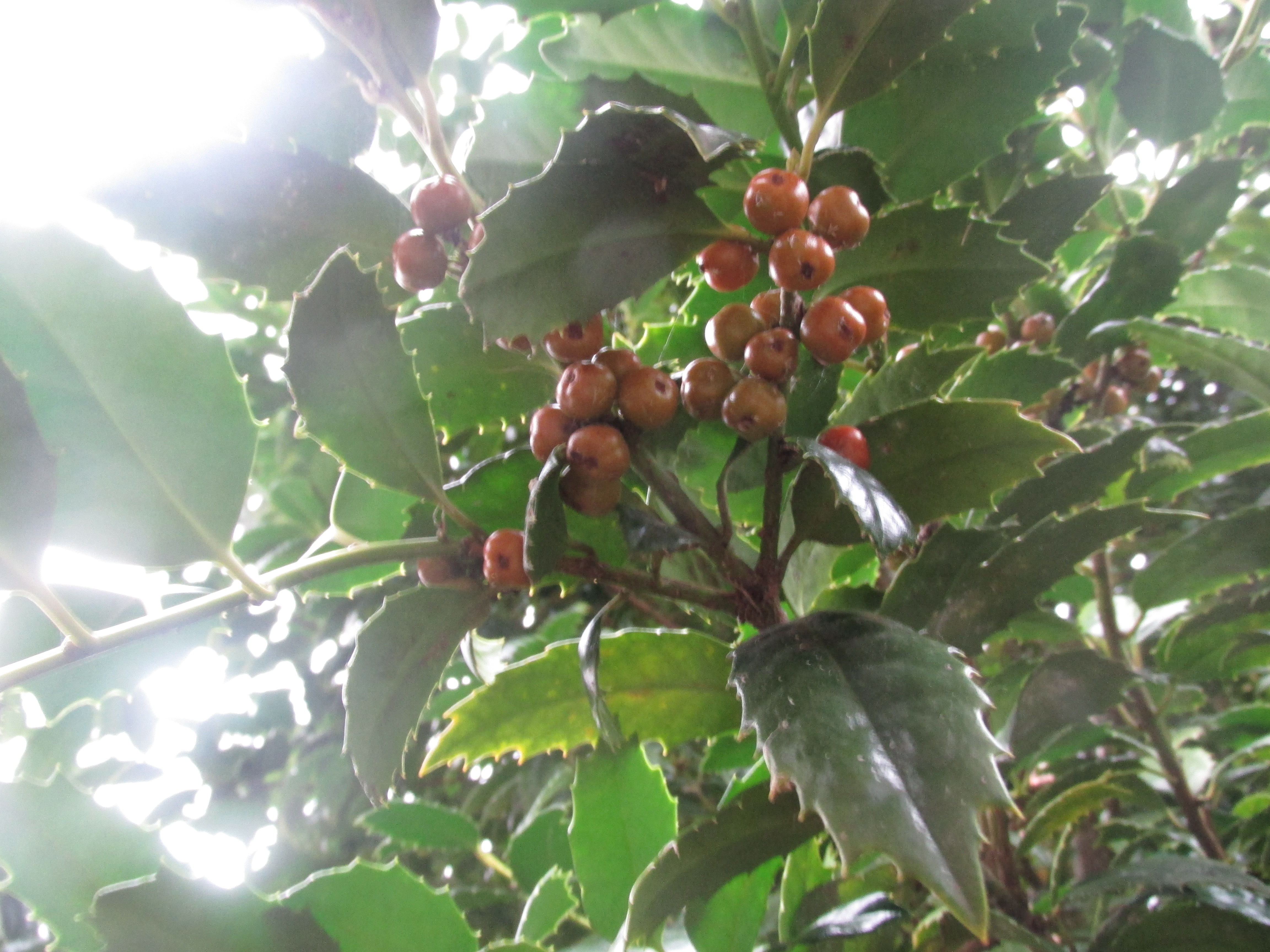 Outside my dining room window we planted Holly. The plants were no more than large bushes when they went into the ground almost 10 years ago, but now they have surpassed their intended purpose, which was to grow tall and branch out and give us a lovely green screen in front of our fence . Each year, they produce enough holly branches and red berries to decorate the whole neighborhood with fresh holly. But the berries are unformed in the beginning, then small green nubs which swell. Around Thanksgiving, or our first colder weather,I begin looking out the window to watch as the berries take on a blush, deepening to a burnt orange, before finally glowing Christmas red. As I wait and watch, the right time comes to bring some branches and berries inside for our own “hanging of the green.”